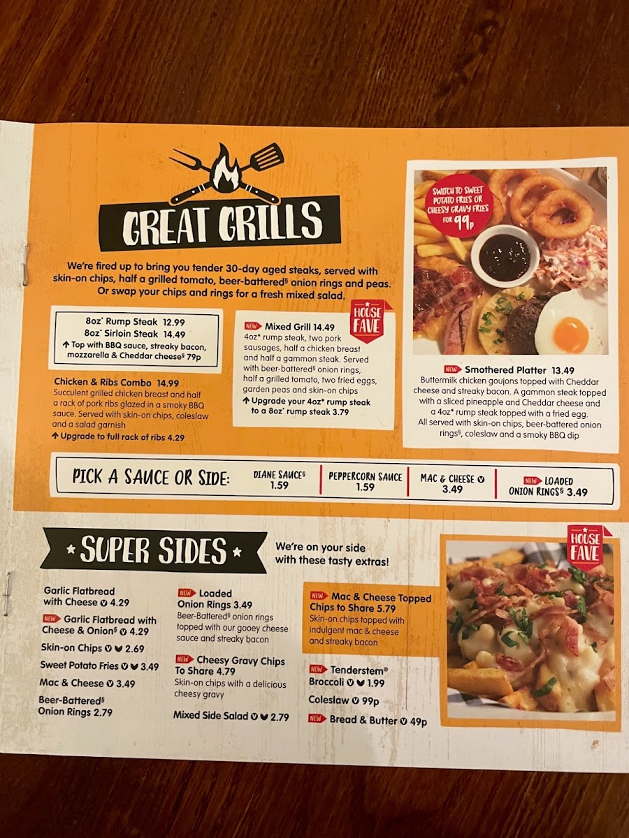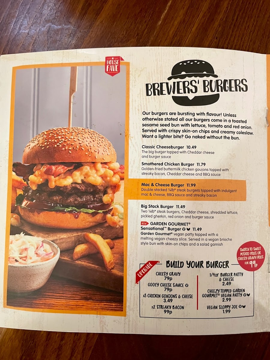 Welcome to The Howgate Brewers Fayre, located in the heart of Howgate, Whitehaven. This inviting restaurant offers a diverse menu perfect for anyone seeking hearty comfort food. The standout item is the Brewer's Burgers, featuring the mouthwatering Big Stack Burger, loaded with double steak patties, Cheddar, and all the fixings. You'll find classic tastes, such as the PiriPiri Chicken and a rich Sweet Potato Curry, catering to various palates.